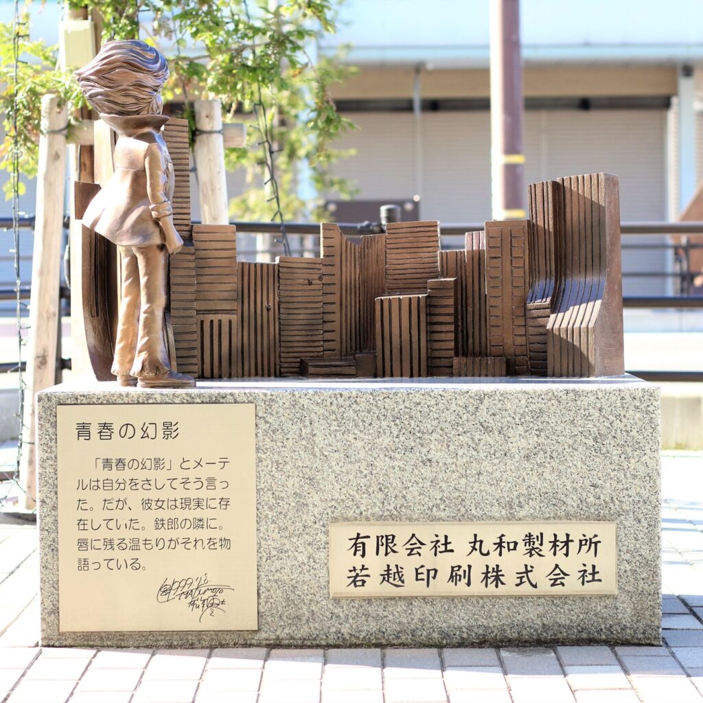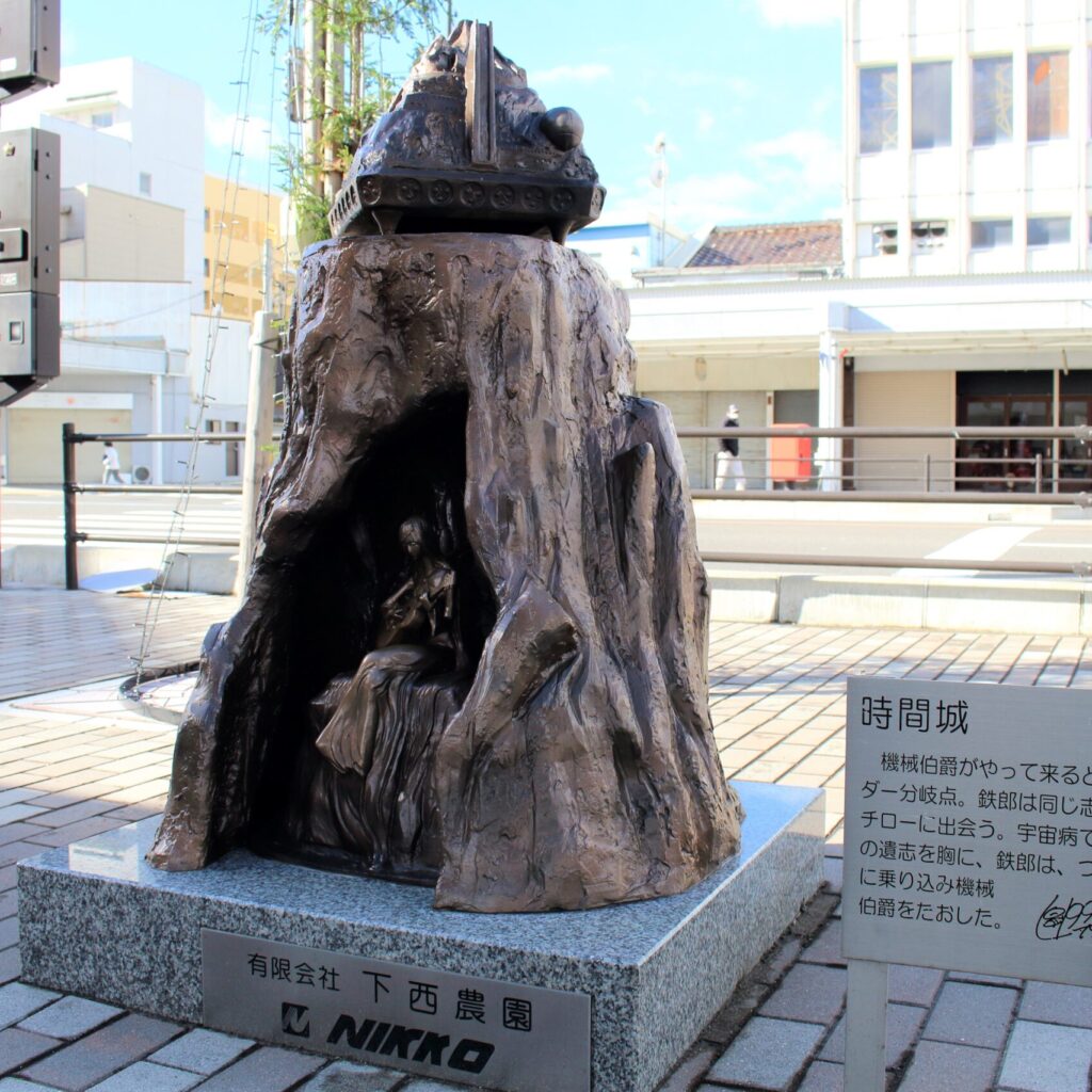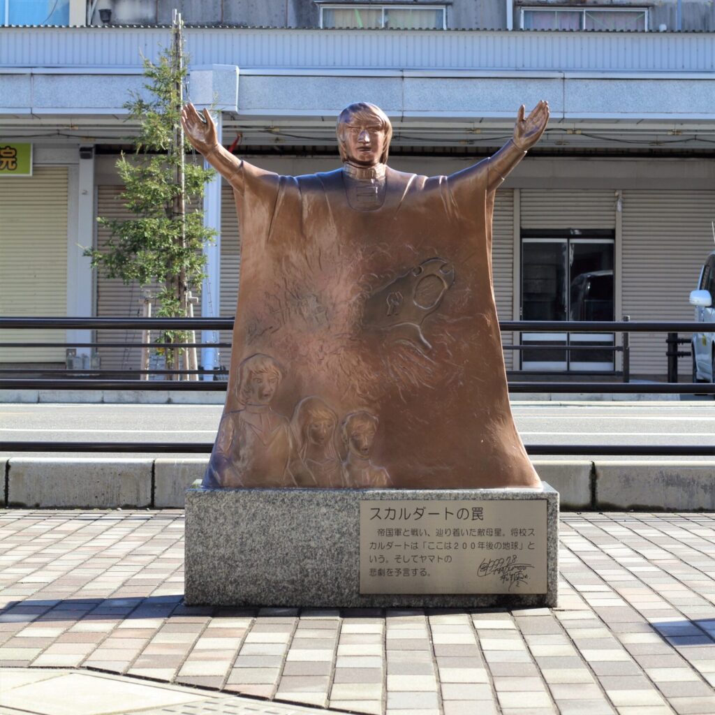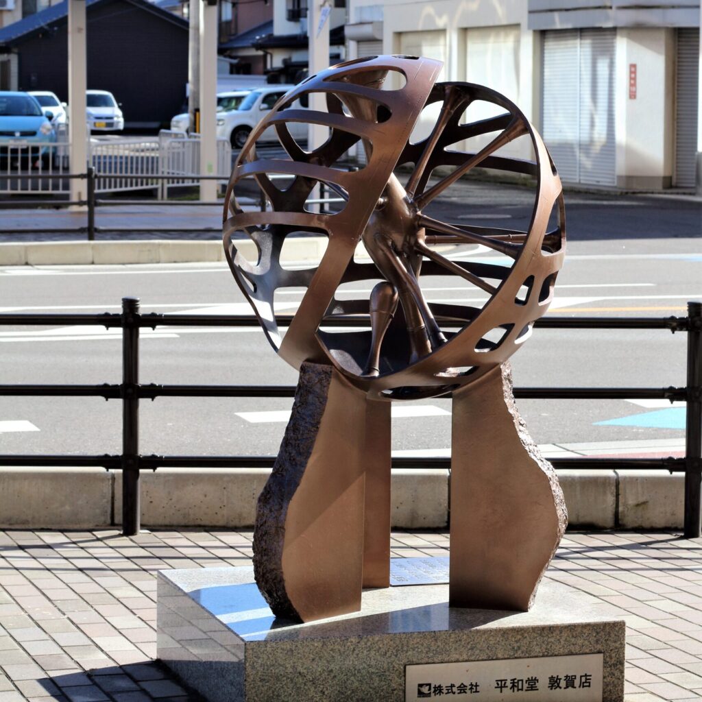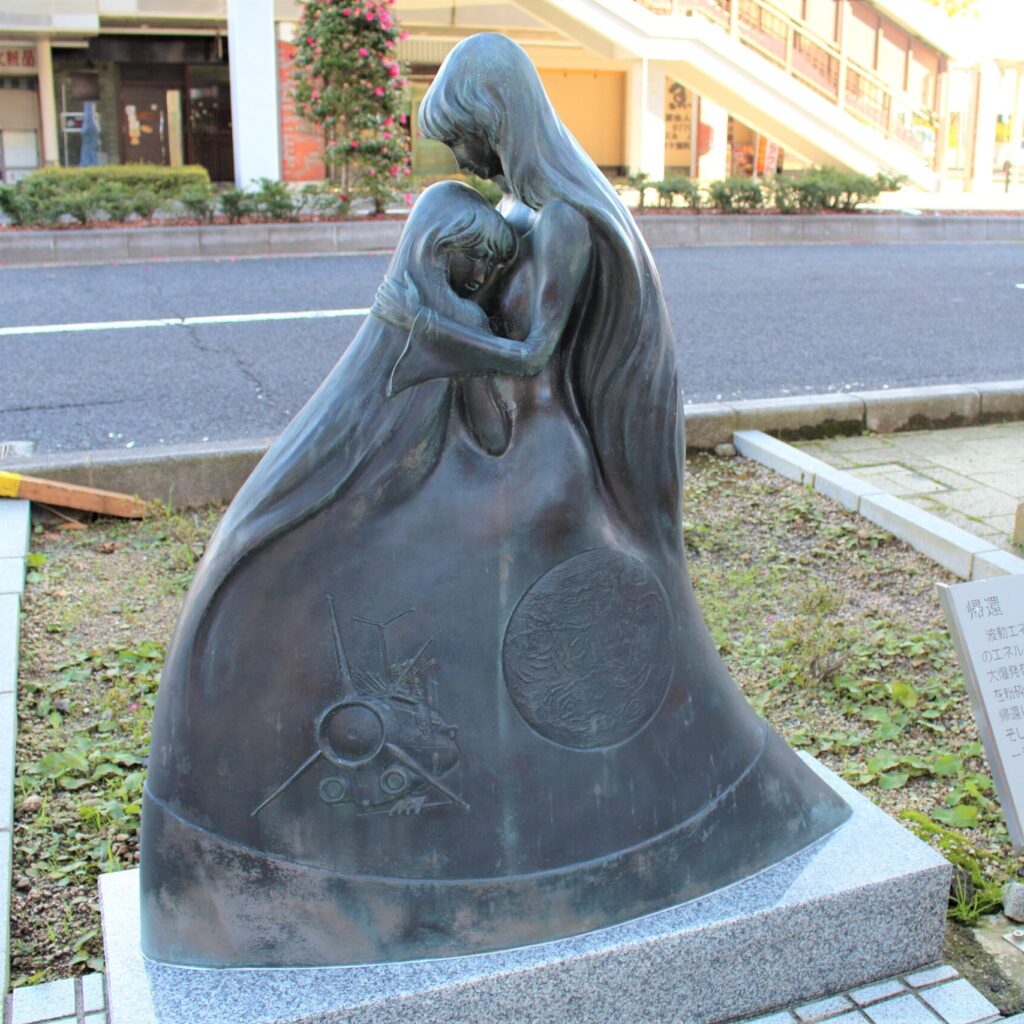 かつては東京とパリを結ぶ「欧亜国際連絡列車」が敦賀港駅を経由して走り、敦賀は「日本でも有数の鉄道と港の町」でした。1999年に敦賀港開港100周年を記念して、市のイメージである「科学都市」「港」「駅」と敦賀市の将来像を重ね合わせて、「宇宙戦艦ヤマト」のブロンズ像12体、「銀河鉄道999」のブロンズ像18体の計28体のモニュメントを敦賀駅から気比神宮までのシンボルロードに設置しました。